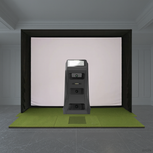 The NVISAGE NEO-E SIG Golf Simulator Package includes the NVISAGE NEO-E Launch Monitor, SIG Golf Simulator Enclosure in your preferred size and screen material, SIG Landing Pad Turf, and choice of SIGPRO Golf Mat.