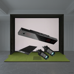 The Uneekor EYE XO2 Performance Bundle SIG Golf Simulator Package includes the Uneekor EYE XO2 Performance Bundle Launch Monitor, SIG Golf Simulator Enclosure in your preferred size and screen material, SIG Landing Pad Turf, and choice of SIGPRO Golf Mat.