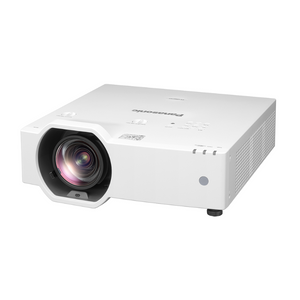 The Panasonic PT-VMZ6STU7 6200-Lumen WUXGA Short Throw Golf Simulator Projector delivers advanced performance for golf simulators, classrooms, and compact spaces where flexibility and image quality are a must. This powerful short-throw laser projector in a modern white finish projects brilliant 6,200-lumen images with deep color and minimal shadowing, even in bright environments. Its eco-friendly chassis incorporates 56% recycled plastic, supporting both sustainability and long-term reliability. With features like powered focus, 1.2x optical zoom, wide lens shift, and comprehensive geometric adjustments, installation is seamless - even in challenging layouts.