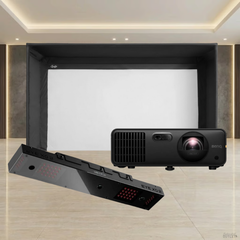 Uneekor EYE XO2 Launch Monitor, 3 Month Ultimate Package Trial, Carl's Place Pro Golf Simulator Enclosure Kit with Premium Impact Screen and your choice of Projector.