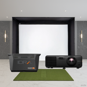 The GolfIn IDRA II DIY Golf Simulator Package is the ultimate solution for customizability and affordability in a golf simulator package. The package includes the GolfIn IDRA II Launch Monitor, Carl's Place DIY Golf Simulator Enclosure Kit with Premium Impact Screen in your preferred size, and choice of hitting mat and projector.
