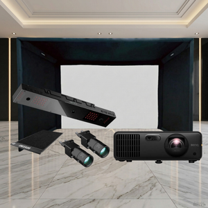 The Uneekor EYE XO2 Performance Bundle Launch Monitor SIGPRO Commercial Golf Simulator Enclosure Projector Package includes the Uneekor EYE XO2 Performance Bundle Launch Monitor, a SIGPRO Commercial Enclosure with your choice of Premium (White) or Premier (Gray) Impact Screen, and a projector selected to suit your space and performance needs.